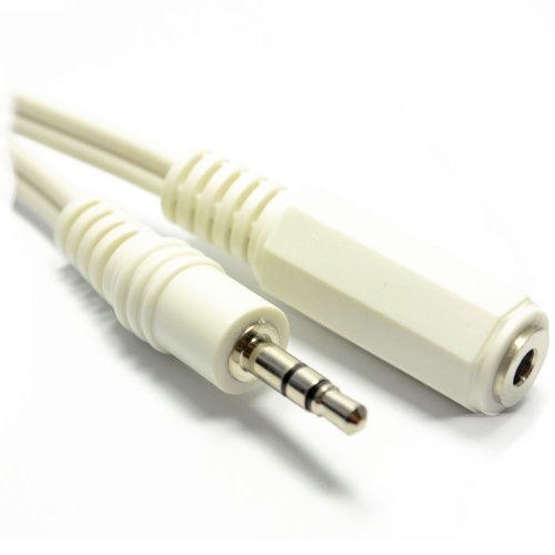 - 3.5mm Stereo Jack Socket to 3.5mm Plug Extension Cable White 1.2m