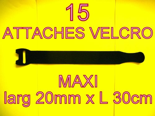 15 MAXI ATTACHES VELCRO SCRATCH STRAP POUR CABLE NOIRE L=30cm l=2cm jack hdmi rca ethernet vga usb xlr VELCRO SCRATCH STRAP POUR CABLE NOIRE L=30cm l